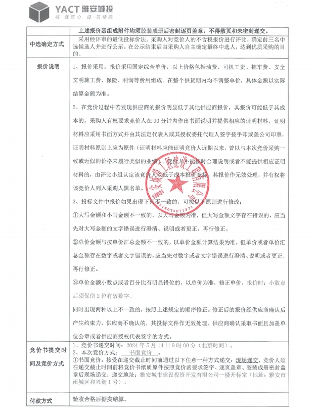 雅州壹號院總坪項目(樣板段)機械租賃采購(二次)競價公告